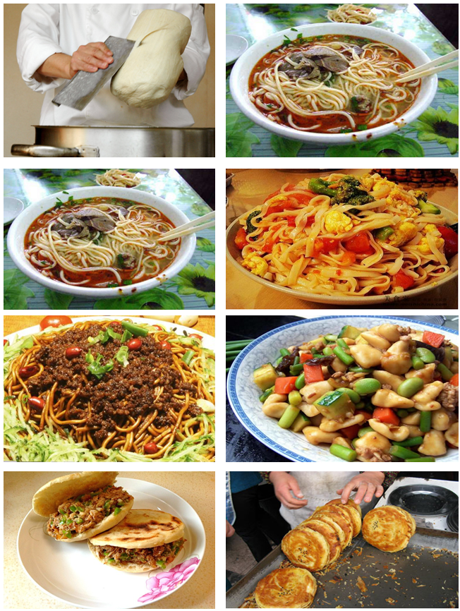 北方面食品種多、花樣多。即使是一般家庭主婦都能用小麥粉、高粱面、豆面、蕎面、莜面做成幾十種面食,象刀削面、拉面、打鹵面、炸醬面、肉夾饃、揪疙瘩、推窩窩、油餅,燒餅,饅頭,包子,花卷,千層餅等等。如果是到了廚師手里,更是花樣翻新,有據(jù)可查的面食550種之多??梢赃@樣講,如果你想品嘗一下北方面食,一天三換樣,六個(gè)月都不會(huì)重樣。