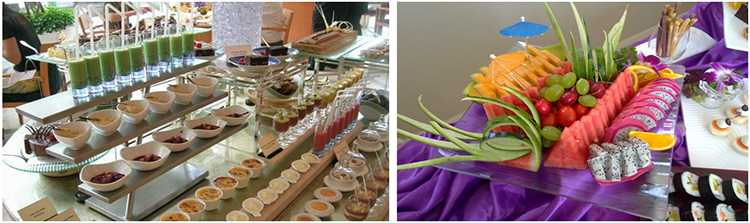 通常茶歇的準(zhǔn)備包括點(diǎn)心要求、飲品要求、擺飾要求、服務(wù)及茶歇開放時(shí)間要求等等,一般不同時(shí)段可以更換不同的飲品、點(diǎn)心組合。大致上茶歇的分類是中式與西式。中式的飲品包括礦泉水、開水、綠茶、花茶、紅茶、奶茶、果茶、罐裝飲料、微量酒精飲料,點(diǎn)心一般是各類糕點(diǎn)、餅干、袋裝食品、時(shí)令水果、花式果盤等等。西式茶歇飲品一般包括各式咖啡、礦泉水、低度酒精飲料、罐裝飲料、紅茶、果茶、牛奶、果汁等等,點(diǎn)心有蛋糕、各類甜品、糕點(diǎn)、水果、花式果盤,有的還有中式糕點(diǎn)。