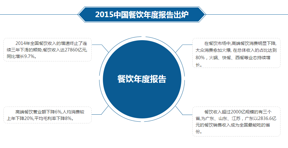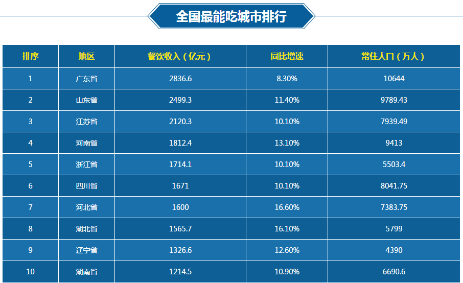 第四屆中國飯店產(chǎn)業(yè)發(fā)展大會暨中國飯店文化節(jié)在北京舉辦。據(jù)中國飯店協(xié)會發(fā)布的《中國餐飲業(yè)年度報告》顯示,過去一年全國餐飲收入達(dá)到27860億元,同比增長9.7%,其中大眾餐飲占80%。在所有的省份中,廣東以2836.6億元的餐飲銷售收入成為全國最能吃的省份。