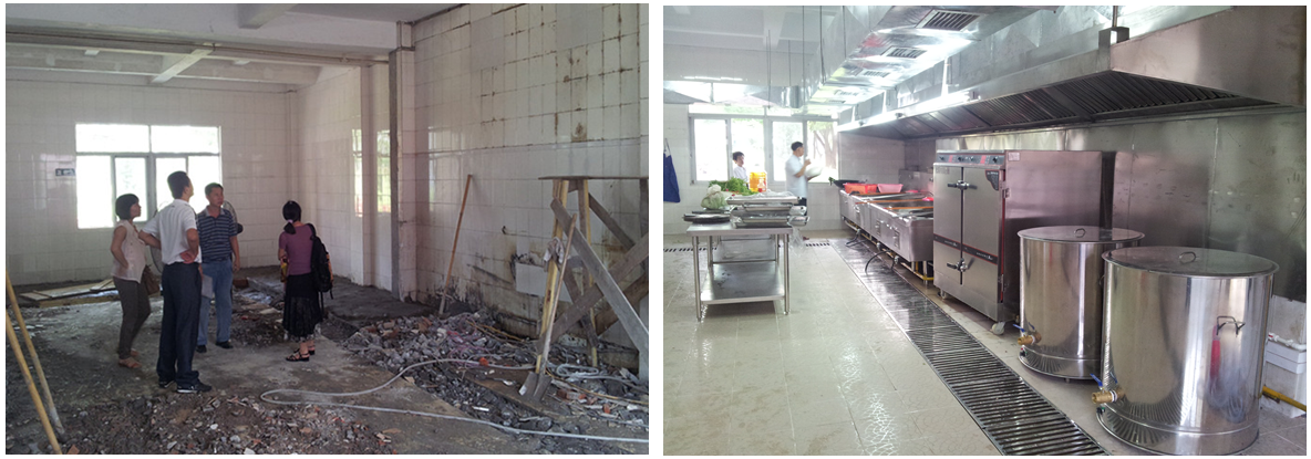 受陳舊設(shè)備以及老舊觀念的影響,在臺(tái)膳公司接手喜耀粵西學(xué)校的飯?zhí)弥?,廚房用的均是簡(jiǎn)單八九十年代的廚具設(shè)備;例如煮飯用幾十個(gè)大的電飯鍋。臺(tái)膳進(jìn)駐喜耀粵西學(xué)校后,將炒菜出品的流程由原來(lái)的一鍋熟,改為大鍋小炒、邊分邊炒的原則;加上臺(tái)膳成熟的的技術(shù)力量(經(jīng)過(guò)嚴(yán)格考核及實(shí)踐的廚師、面點(diǎn)師),以及先進(jìn)的管理理念和完善的制度,在進(jìn)駐學(xué)校經(jīng)營(yíng)食堂后,便獲得了師生及家長(zhǎng)的連連稱贊。