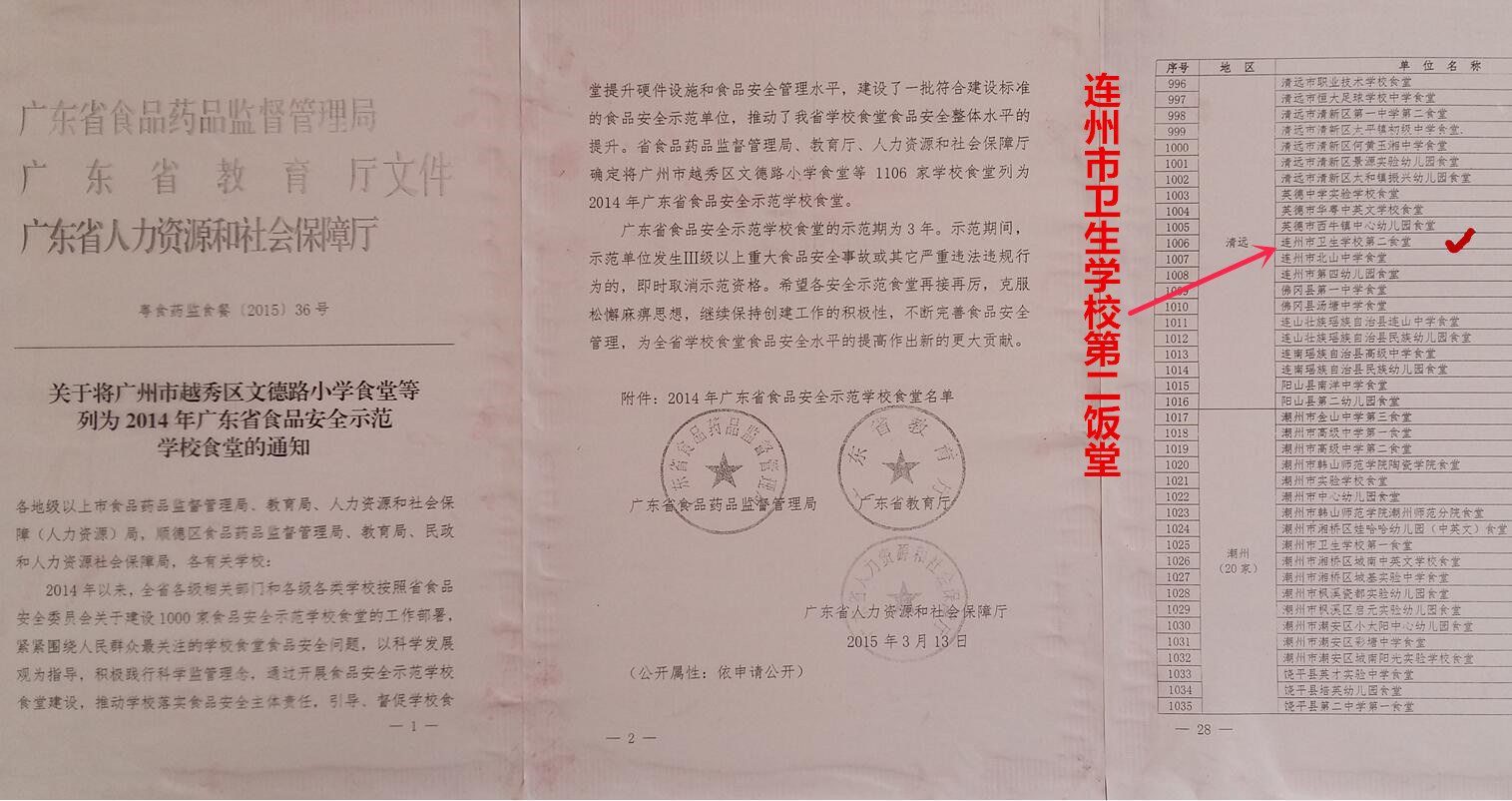 臺(tái)膳膳食經(jīng)營(yíng)的連州衛(wèi)校榮獲“廣東省級(jí)食品安全示范學(xué)校食堂”、“清遠(yuǎn)市食品安全A級(jí)”等光榮稱號(hào)。