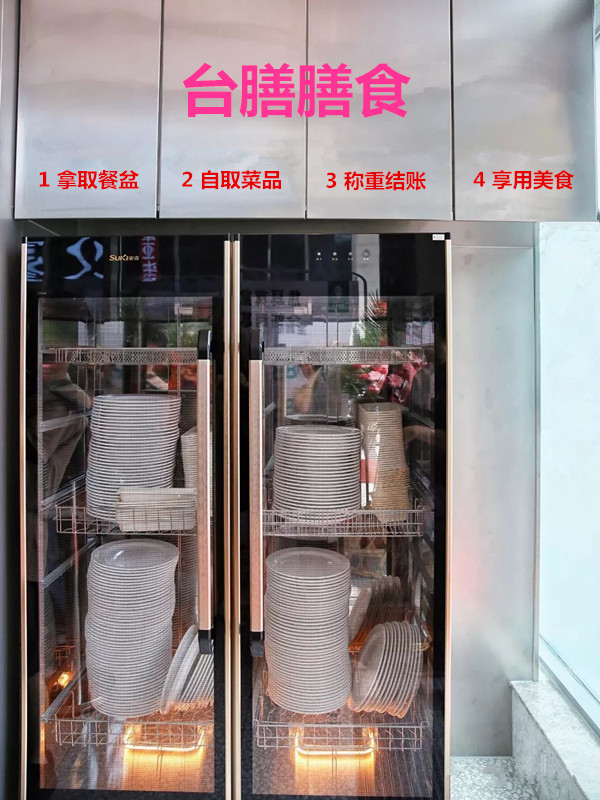 2、取餐速度快。在開餐之際,只要備足菜式品種,實時補充,用餐者自選食品后,到稱菜處稱重刷卡即可。不需要分餐員一個一個去分,速度明顯加快,而且人手也相應的降低。