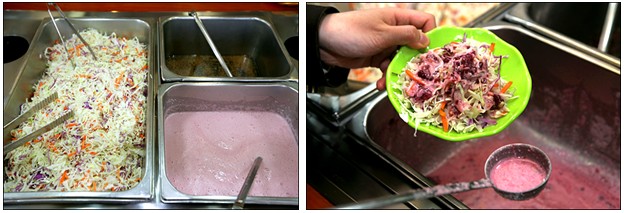 Vegetable salad, salad dressing, there are put grape, it is purple