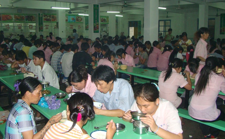 2800 people dining, 9.00 yuan / person. Day, a dirty two prime a soup, eat rice, water and electricity fuel factory responsible.