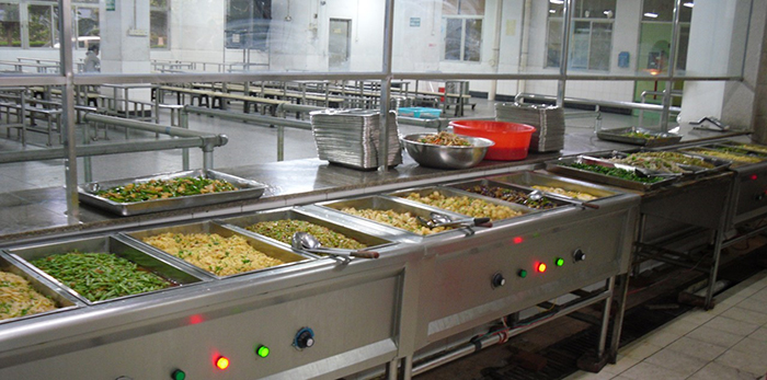 Canteen way: zero free consumption patterns, the number of 2,000 people, the minimum standard dinner 3.50 yuan / meal, breakfast supper 1.50 / meal.